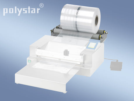 Das polystar® Magnet-Tischschweißgerät Typ 438 M arbeitet nach dem Wärmeimpulsverfahren, d.h. es ist sofort einsatzbereit. Die genaue Parametereingabe von Temperatur, Schweiß- und Kühlzeit sowie der Anpressdruck über einen Touchscreen ist denkbar einfach. Danach kann sofort die Verpackung zwischen die Schweißschienen gelegt und der Fußdrucktaster betätigt werden. Fertig ist die Folienverpackung - kontrolliert im Arbeitsablauf und konstant in der Nahtqualität.